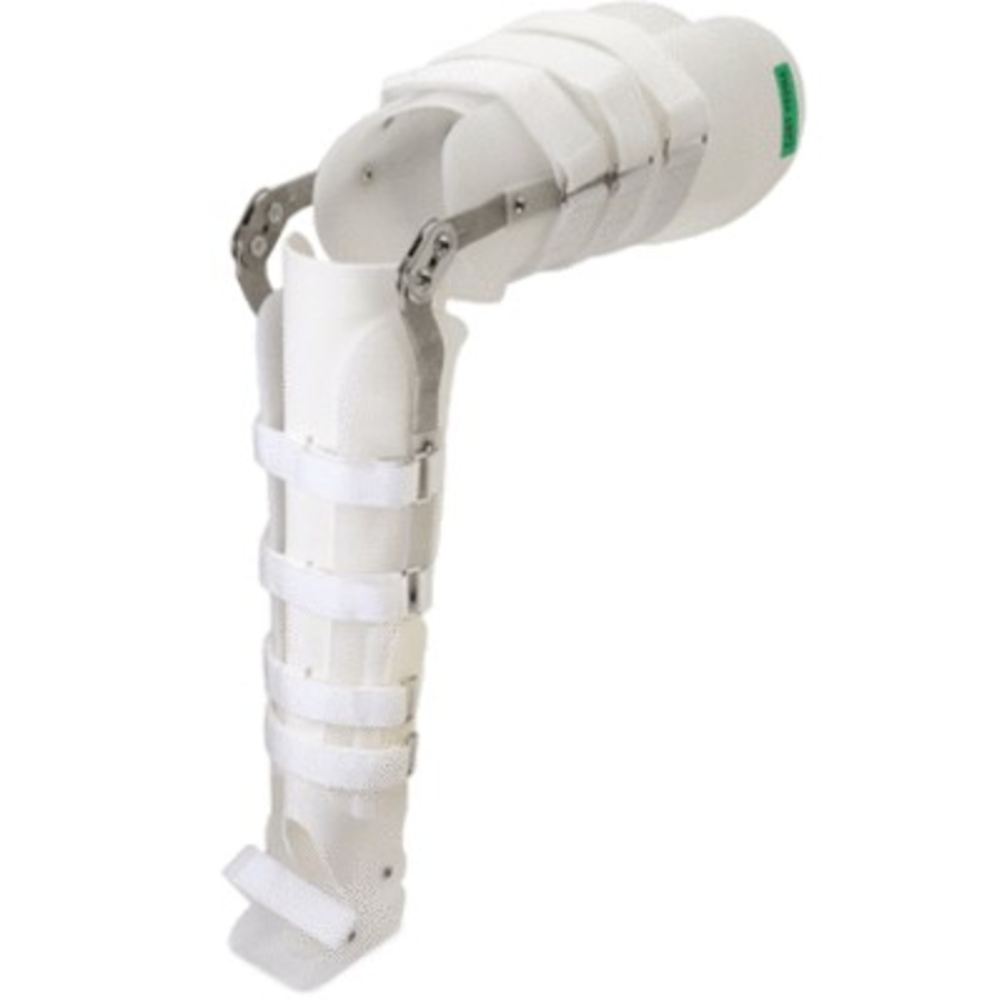Prefabricated and preassembled for many full leg orthopaedic indications. Especially useful for distal femoral or proximal tibial fractures or hemiplegic patients following CVA. Narrow M-L, longer A-P thigh design for more anatomical fit. Free motion, adjustable, or drop-lock knee joints allow for specific range-of-motion and functional knee control. Single axis or solid ankle shoe insert with extended footplate will prevent flaccid foot drop for post-CVA patients. Plastic joint covers for cosmesis and support.