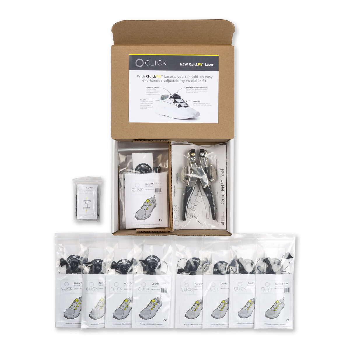 • QuickFit® Lacers also available in 10 packs (10 Small Lacer kits, 100 QuickFit Rivets)