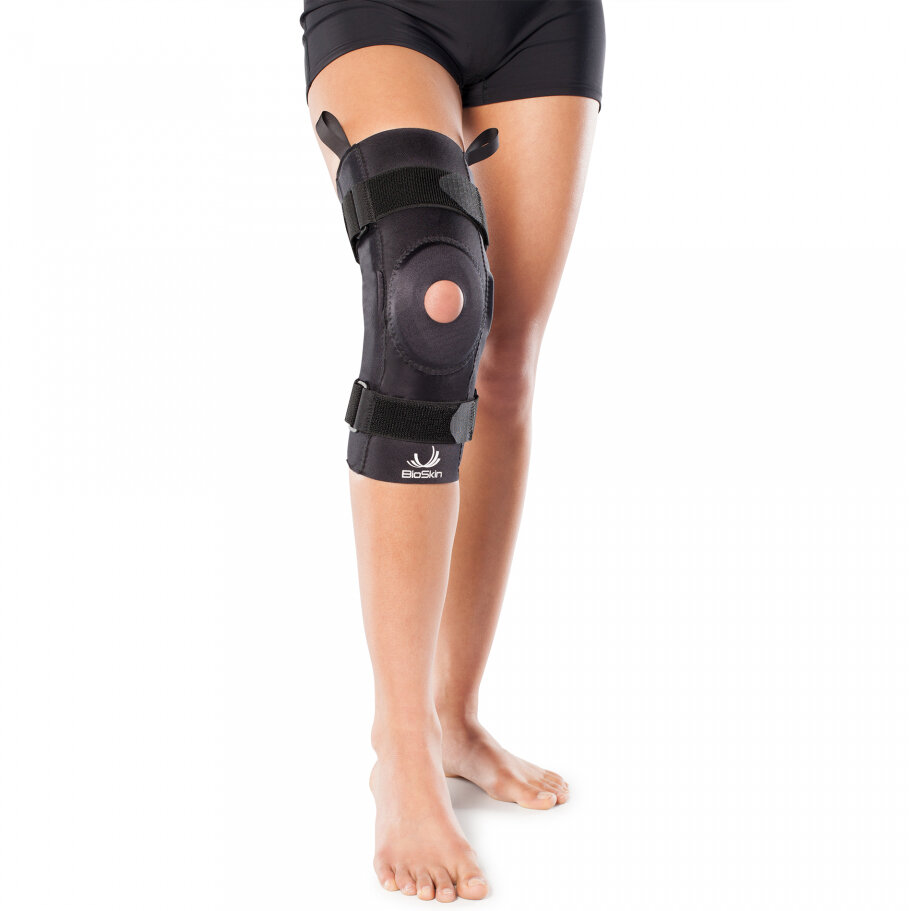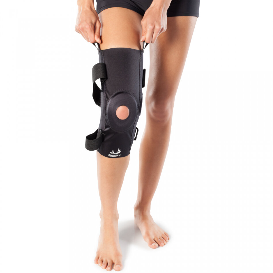 La genouillère articulée Knee Skin est dotée de charnières bicentriques en aluminium qui sont légères et qui apportent un soutien supplémentaire au genou présentant des lésions du LCA, du LLI et d’autres blessures ligamentaires. Construite à partir des matériaux respirants uniques BioSkin, cette genouillère assure une compression qui contrôle l’enflure et la douleur et accélère la guérison de l’articulation lésée.