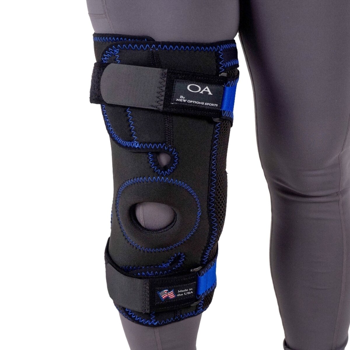 The New Options Sports OA Brace provides a simple yet comfortable design to help patients comply with their treatment plan and enjoy the freedom of a healthy lifestyle. Compressive buttressed knee sleeve, assuring correct joint alignment for osteoarthritis knee patients.